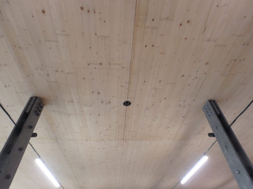 天井をみるとトドマツCLTの表面がそのまま見える「あらわし」仕上げです。