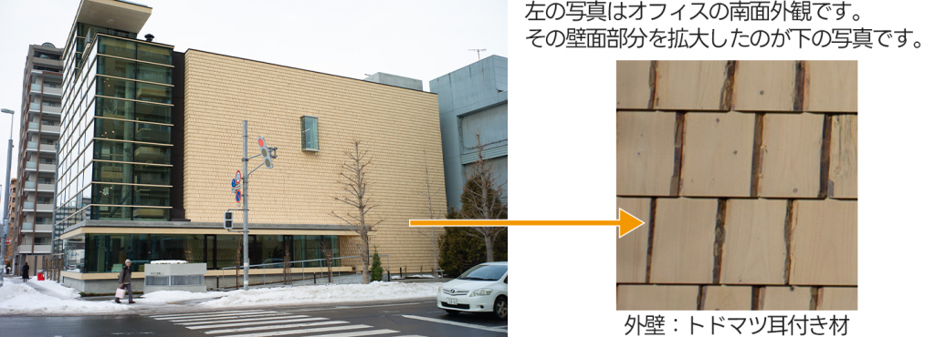 以上 日建設計北海道オフィスの全体像と当社製造トドマツ圧縮木材フローリング施工例です。