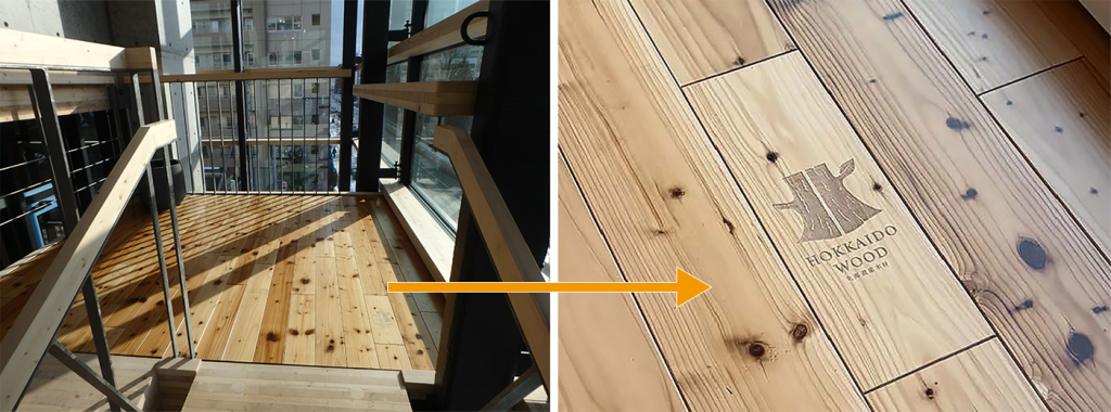 当社が製造した厚さ15mmのトドマツ圧縮フローリングが採用施工されています。